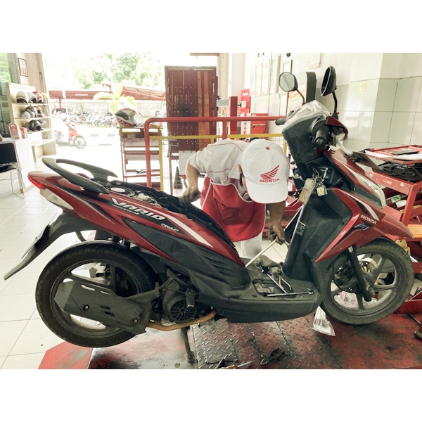 Sedangkan untuk motor skutik, maka lakukan pemeriksaan kondisi CVTnya. Seperti komponen pulley, roller serta drive beltnya.