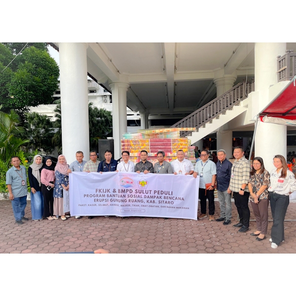 BRI Regional Office Manado bersama-sama dengan Forum Komunikasi Inklusi Jasa Keuangan (FKIJK) Sulut menyalurkan bantuan lewat Posko Terpadu Penanggulangan Bencana Gunung Ruang Pemprov Sulut, Jumat(19/4/2024) di Kantor Gubernur Sulut.