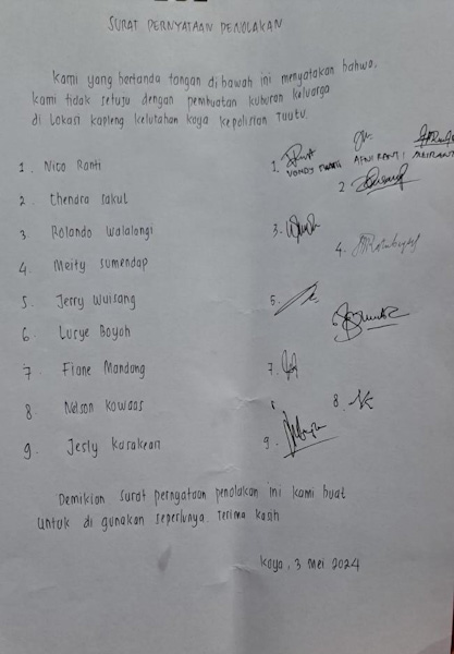 MINAHASA – Sejumlah warga tolak lahan pribadi dijadikan tempat pemakaman di Lingkungan ll, Kelurahan Koya, Kecamatan Tondano Selatan, Kabupaten Minahasa.