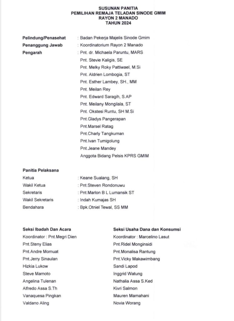 SULUTNEWSTV.com, MANADO – Panitia Pemilihan Remaja Teladan (Retel) Sinode GMIM Rayon 2 Manado, Komisi Pelayanan Remaja Sinode (KPRS) GMIM tahun 2024 resmi dilantik. Kegiatan pelantikkan dilakukan di Gereja Masehi Injili di Minahasa Jemaat El Manibang Manado, Minggu(12/5/2024).