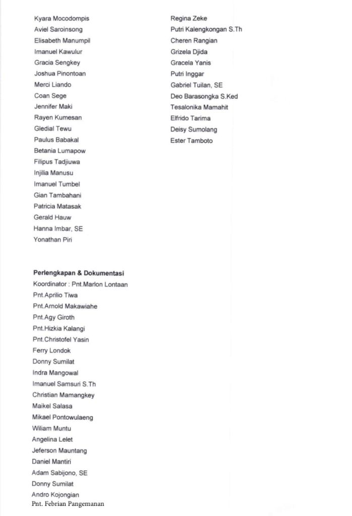 Selesai ibadah, panitia langsung mengadakan rapat yang dipimpin ketua panitia Keane Sualang, SH, didampingi Wakil Ketua Pnt Steven Rondonuwu, Sekretaris Pnt Marlon Lumansik, Wakil Sekretaris Indah Kumayas, Ketua Kordinatorium Rayon 2 Manado Pnt Okstesi Runtu dan Wakil Ketua KPRS Pnt Stevie Kaligis.