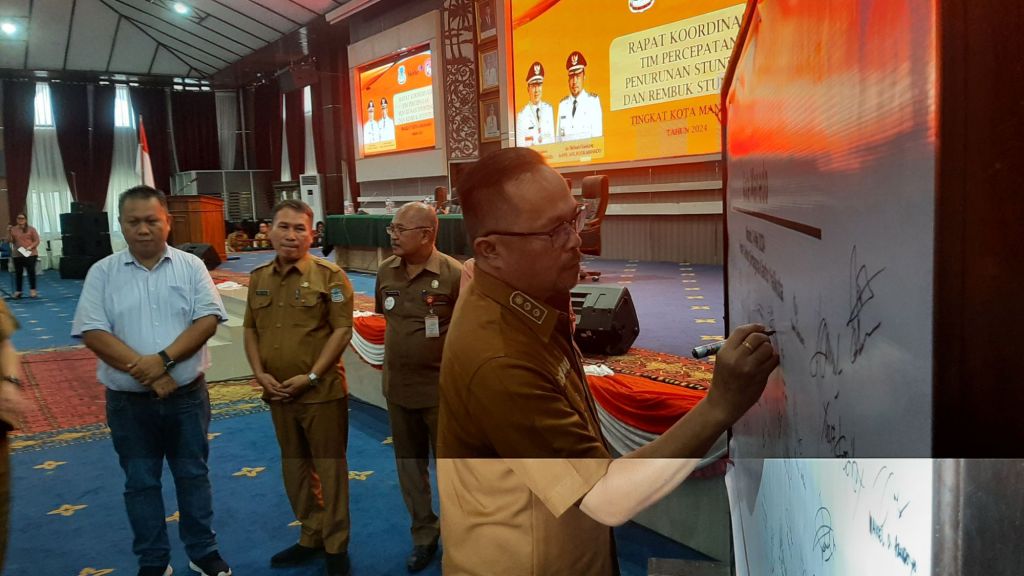 Dalam rakor ini juga, dilakukan penandatanganan kesepakatan Tim Percepatan Penurunan Stunting Kota Manado oleh Wali Kota Andrei Angouw dan Wakil Wali Kota dr Richard Sualang.