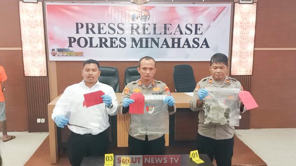 Minahasa- Polres Minahasa menggelar Konfrensi Pers terkait Kasus 338 dengan menggunakan senjata tajam jenis badik yang terjadi di Kelurahan Tataaran Dua Kabupaten Minahasa yang terjadi pada Jumat, (24/4/24) pagi, akhirnya berhasil diungkap Polres Minahasa.