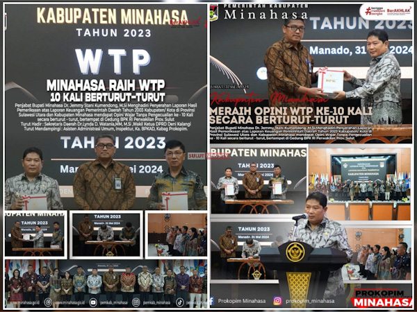 MINAHASA – Dibawa kepemimpinan Penjabat (Pj) Bupati, Dr Jemmy Stani Kumendong MSi, Kabupaten Minahasa meraih Opini Wajar Tanpa Pengecualian (WTP) ke-10 secara beruntun dari Badan Pemeriksa Keuangan Republik Indonesia (BPK-RI).