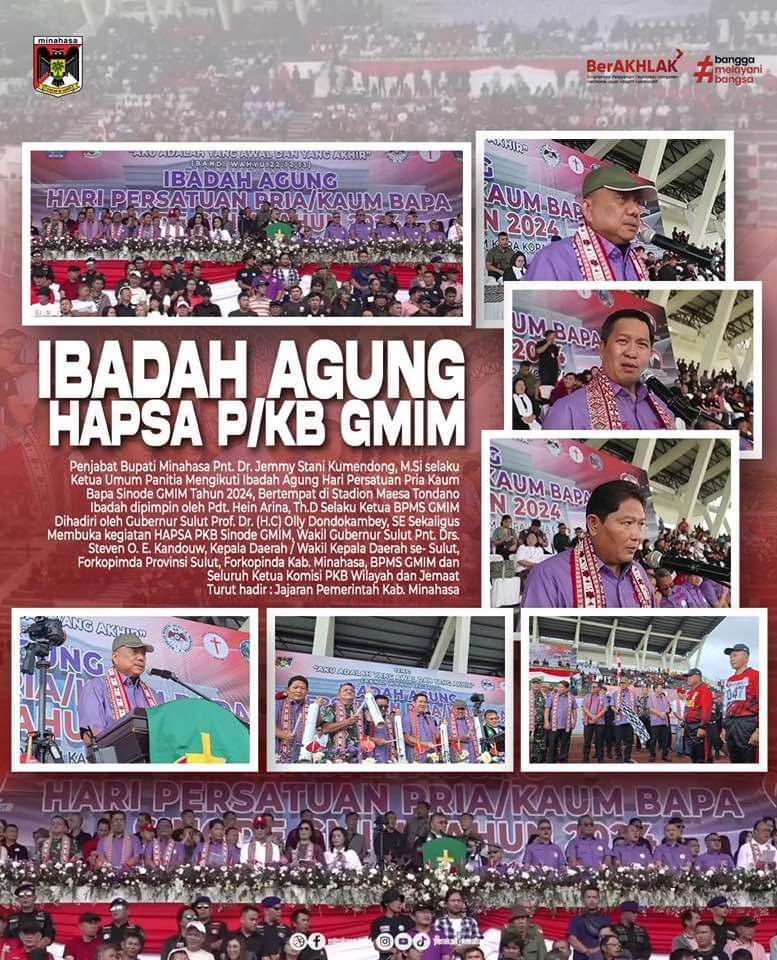“Atas nama Pemerintah Provinsi Sulawesi Utara sekaligus juga atas nama Persatuan Gereja – Gereja di Indonesia(PGI), dimana saya selaku pengurus harian PGI juga Ketua Pria Kum Bapa PGI menyampaikan banyak selamat kepada PKB GMIM boleh melaksanakan momentum besar perayaan HAPSA GMIM tahun ini,” kata Gubernur Olly Dondokambey.