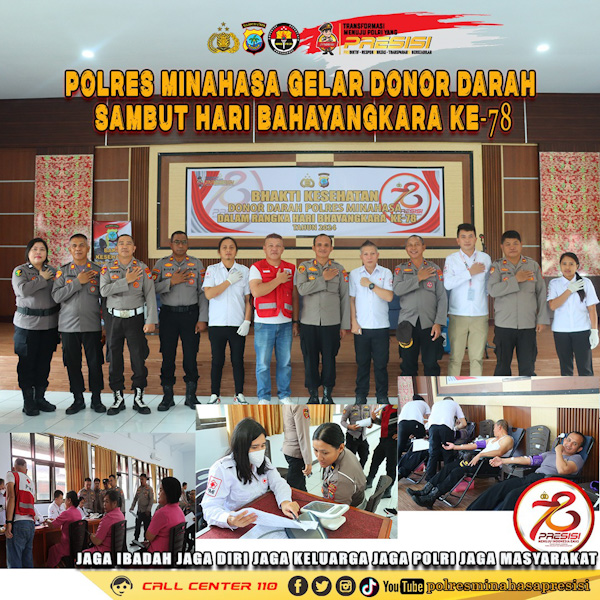 “Kegiatan donor darah ini menjadi bukti nyata semangat Bhayangkara untuk selalu hadir dan bermanfaat bagi masyarakat,” tutur Kapolres Minahasa, AKBP S. Sophian, S.I.K.