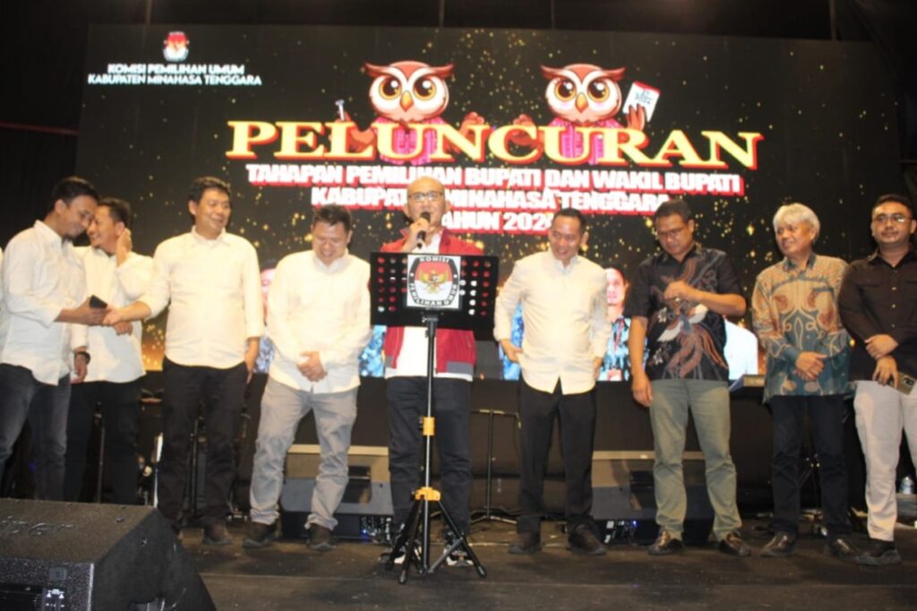 MITRA – Komisi Pemilihan Umum (KPU) Kabupaten Minahasa Tenggara (Mitra) secara resmi meluncurkan (launching) Pemilihan Kepala Daerah (Pilkada) Serentak Tahun 2024 beserta maskot dan jingle Pemilihan Bupati dan Wakil Bupati Mitra. Kegiatan ini dipusatkan di Lapangan Taman Kota Tombatu, Kecamatan Tombatu, Mitra, Sabtu (15/06/2024).