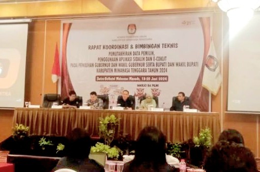 MANADO – Komisi Pemilihan Umum (KPU) Kabupaten Minahasa Tenggara menyelenggarakan Bimbingan Teknis (Bimtek) Pemutakhiran Data Pemilih dan penggunaan aplikasi Sistem Informasi Data Pemilih (Sidalih) dan E-Coklit pada Selasa hingga Kamis (18-20/06/2024) di Swiss-Belhotel Maleosan Manado.