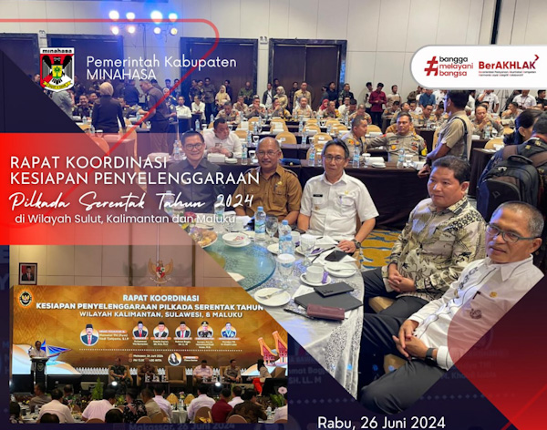 Tondano – Penjabat (Pj) Bupati Minahasa Dr. Jemmy Stani Kumendong, M.Si mengikuti Rapat Koordinasi (Rakor) Kesiapan penyelenggaraan Pemilihan Umum Kepala Daerah (Pilkada) Serentak Tahun 2024, di Claro Hotel Makasar, Rabu (26/6/2024).