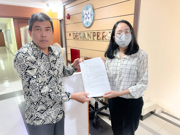 Sementara itu, Astrid, Staf Bagian Pengaduan Dewan Pers RI, menyebut laporan ini pasti akan ditindaklanjuti. “Mekanismenya ialah, Dewan Pers akan segera membentuk tim kemudian melakukan investigasi yang diakhiri dengan putusan setelah dilakukan mediasi atau mempertemukan kedua pihak,” paparnya.
