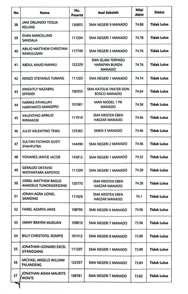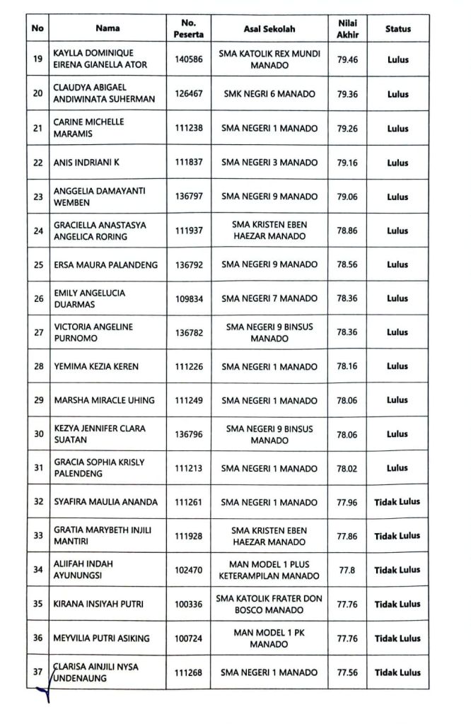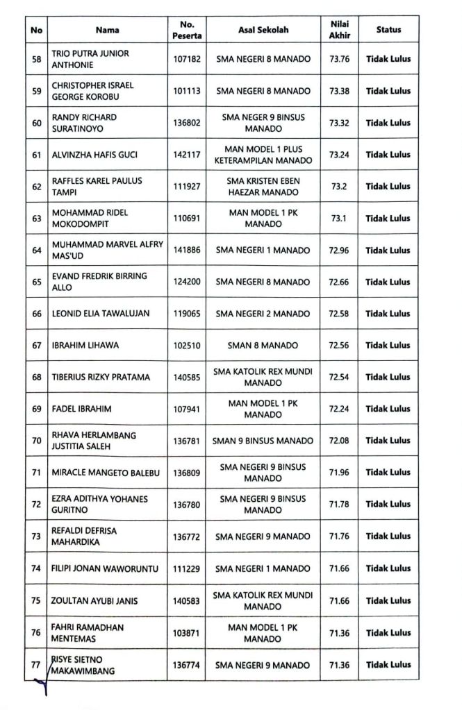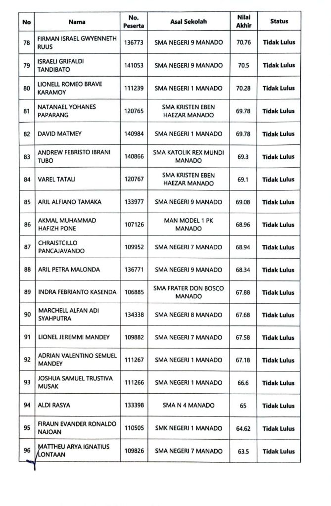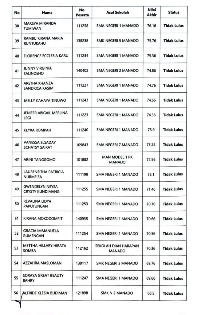 Berikut Daftar Nama Yang Dinyatakan Lulus/Tidak Lulus :