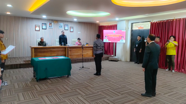 Pelantikkan disaksikan Ketua DPRD Manado Dra Aaltje Dondokambey M.Kes Apt dan Sekertaris Kota Manado DR Micler C.S Lakat, SH. MH.,