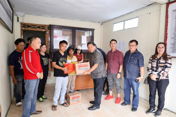 Dalam kegiatan tersebut, Pj. Bupati didampingi Asisten I Bidang Pemerintahan dan Kesejahteraan Rakyat, Kadis Sosial, Camat Eris, dan Para Hukum Tua dan perangkat desa yang terdampak banjir se-Kecamatan Eris. (ChT).