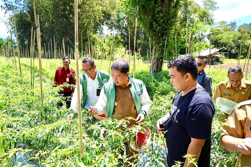 Tondano – Penjabat Bupati Minahasa Dr. Jemmy Stani Kumendong, M.Si melakukan panen perdana komoditas Tomat dan Cabe Rawit (Rica) di Desa Taraitak, Kecamatan Langowan Utara, Minahasa, Sulawesi Utara.
