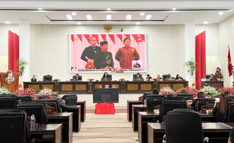 Minahasa- Penjabat Bupati Minahasa Dr. Jemmy Stani Kumendong M,Si, menghadiri Rapat Paripurna Istimewa DPRD Kabupaten Minahasa Mendengarkan Pidato Presiden Republik Indonesia Memperingati HUT RI Ke-79 Pada Sidang Tahunan MPR-RI dan Sidang Bersama DPR-RI dan DPD-RI Tahun 2024 Bertempat di Ruang Sidang DPRD Kabupaten Minahasa, Jumat ( 16/8/2024).