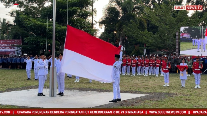 Upacara penurunan bendera peringatan hari kemerdekaan Republik Indonesia ke 79 di kabupaten Minahasa berlangsung hikmad. (ChT).
