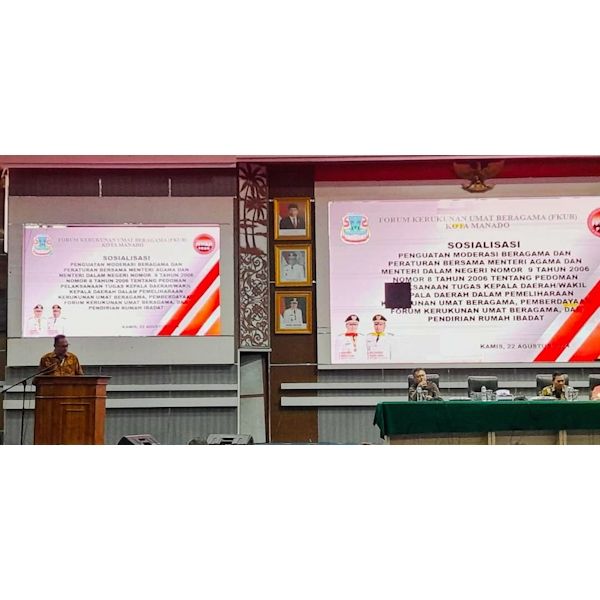 SULUTNEWSTV.com, MANADO – Pemerintah Kota Manado melalui Badan Kesatuan Bangsa dan Politik Kota Manado menggelar Sosialisasi Penguatan Moderasi Beragama Dan Peraturan Bersama Menteri Agama Dan Menteri Dalam Negeri Nomor 9 Tahun 2006, Nomor 8 Tahun 2006 Tentang Pedoman Pelaksanaan Tugas Kepala Daerah/Wakil Kepala Daerah Dalam Pemeliharaan Kerukunan Umat Beragama, Pemberdayaan Forum Kerukunan Umat Beragama, Dan Pendirian Rumah Ibadat. Kamis,(22/8/2024).