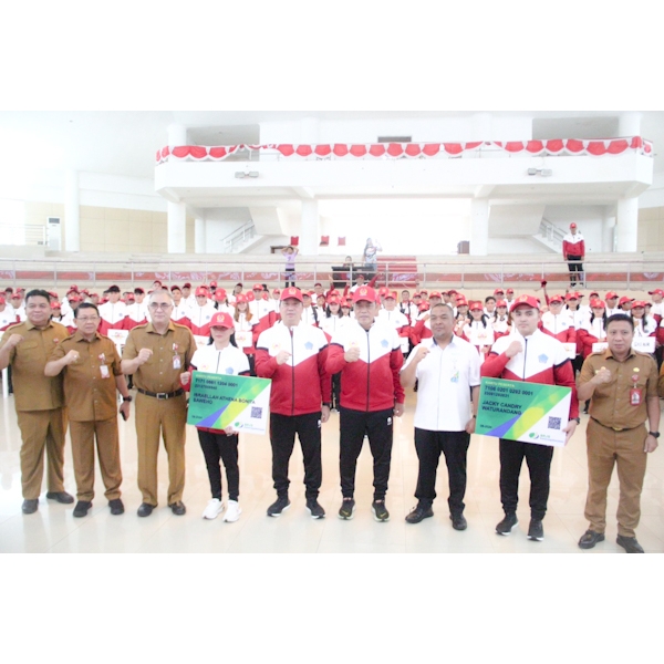 Penyerahan kartu oleh Wakil Gubernur Sulawesi Utara Drs Steven Kandouw selaku Ketua umum Komite Olahraga Nasional Indonesia (KONI) Sulut secara simbolis, di aula Mapalus Kantor Gubernur Sulut, Senin(26/8/2024).