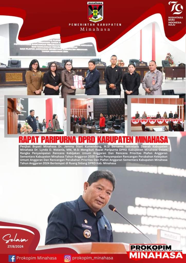 Minahasa – Pemerintah Kabupaten (Pemkab) Minahasa, dibawah pimpinan Penjabat Bupati Minahasa, Dr Jemmy Stani Kumendong MSi, menyampaikan Rencana Kebijakan Umum Anggaran (KUA) dan Rencana Prioritas Plafon Anggaran Sementara (PPAS) Kabupaten Minahasa untuk Tahun Anggaran (TA) 2025, serta Penyampaian Rancangan Perubahan KUA dan Rancangan Perubahan PPAS TA 2024.