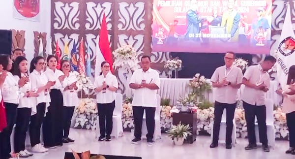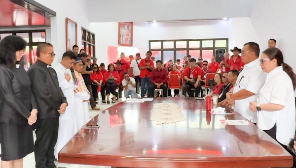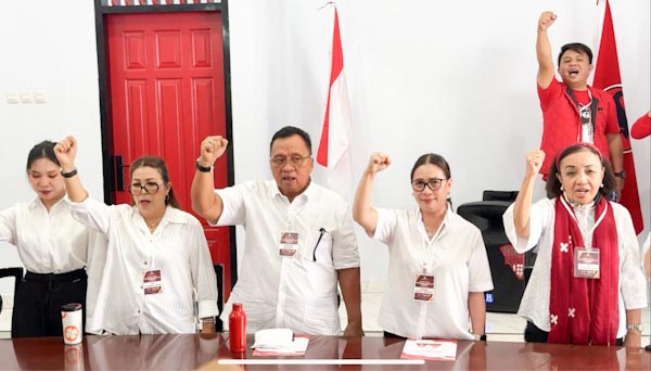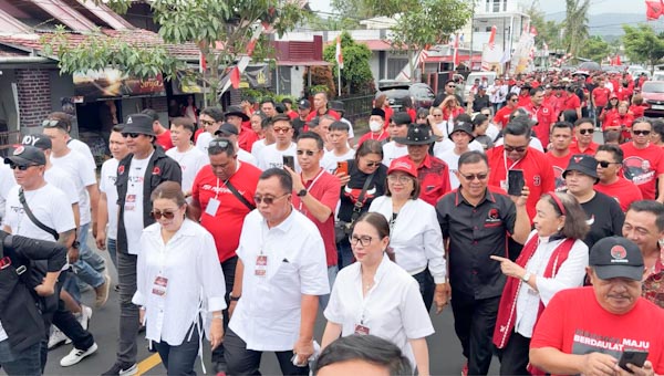Tondano – Ribuan militan Pasangan Calon (Paslon) Bupati dan Wakil Bupati Minahasa dari PDI Perjuangan Robby Dondokambey-Vanda Sarundajang (RD-Vasung) menggebrak Tondano, Kabupaten Minahasa, Sulawesi Utara. Di hari ketiga pendaftaran Paslon, RD-Vasung bersama keluraga tercinta seluruh tim dan relawan hadir mendaftar di Kantor KPU Minahasa, Kamis (29/82024).