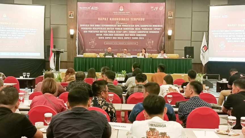 Rakor yang digelar di Manado Tateli Resort, Senin (16/9/2024), digelar dalam rangka persiapan Rekapitulasi Daftar Pemilih Sementara Hasil Perbaikan (DPSHP) dan Penetapan Daftar Pemilih Tetap (DPT) Tingkat Kabupaten Minahasa Untuk Pemilihan Gubernur dan Wakil Gubernur serta Bupati dan Wakil Bupati Tahun 2024.