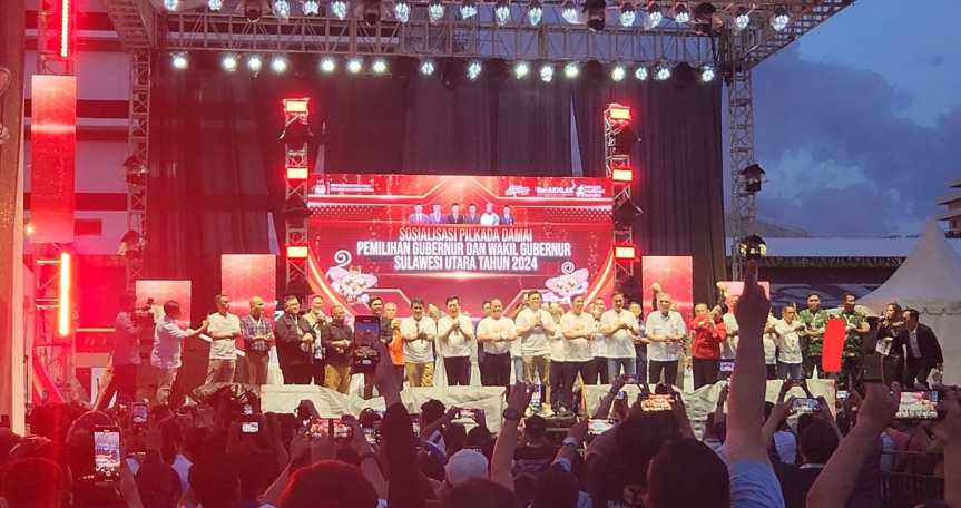 Kegiatan yang dilaksanakan di Lapangan Basket Kawasan Mega Mas itu dihadiri oleh tiga pasangan calon (paslon) gubernur dan wakil gubernur Sulut.