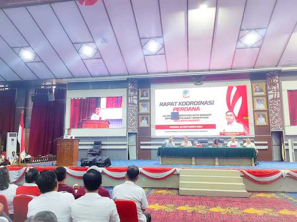 SULUTNEWSTV.com, MANADO – Pemerintah Kota Manado melaksanakan Rapat Koordinasi Perdana Pjs Wali Kota Manado Clay J.H Dondokambey, S.STP, M.AP bersama jajaran Pemerintah Kota Manado di Aula Serbaguna Kantor Wali Kota Manado, Rabu(25/9/2024).