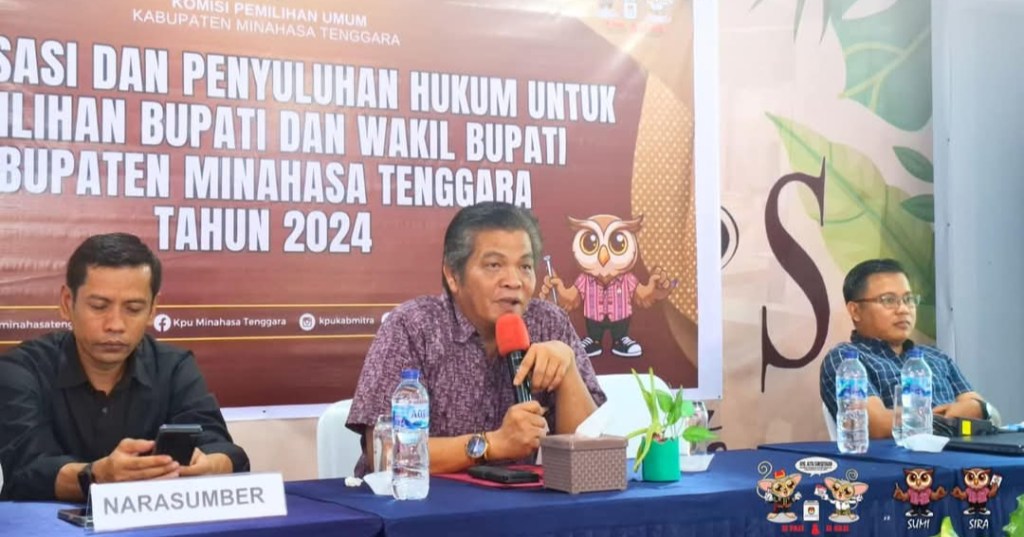 Mitra – Komisi Pemilihan Umum (KPU) Kabupaten Minahasa Tenggara (Mitra) menggelar sosialisasi dan penyuluhan hukum terkait Pemilihan Kepala Daerah (Pilkada) di Hotel D’jtos Ratahan, Jumat (27/9/2024).