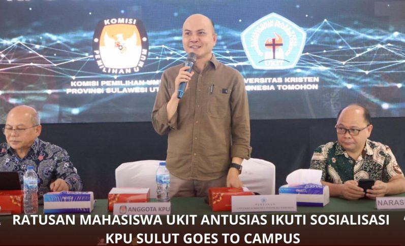 Tomohon – KPU Sulut menyasar para pemilih muda di Universitas Kristen Indonesia Tomohon melalui Kegiatan KPU Goes to Campus yang berlangsung di Auditorium Universitas Kristen Indonesia Tomohon (UKIT), Jumat (27/9/2024).