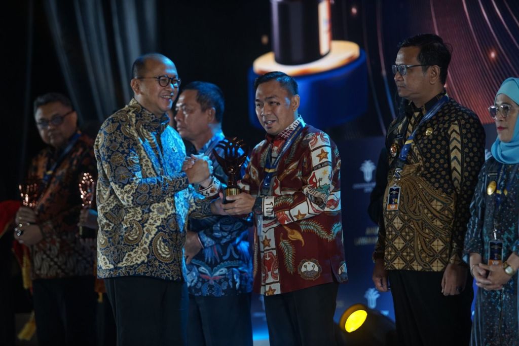 Trophy diserahkan oleh Menteri Dalam Negeri, Tito Karnavian dengan Kategori Kota untuk Kinerja Pelayanan Terpadu Satu Pintu dan Kinerja Percepatan Pelaksanaan Berusaha oleh Menteri Investasi/Ka. BKPM Rosan Roeslani.
