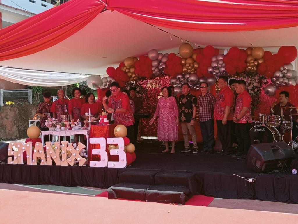 Rangkaian acara dibuka dengan Ibadah syukur yang di pimpin oleh Pdt Lineke Tumbuan MTh, MSi dan diikuti puji – pujian dari Guru – Guru serta staff, Ninevoice dan Mantan Kepsek dan Guru.