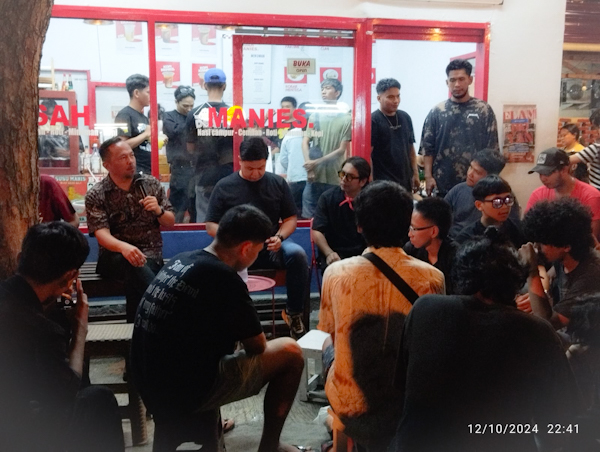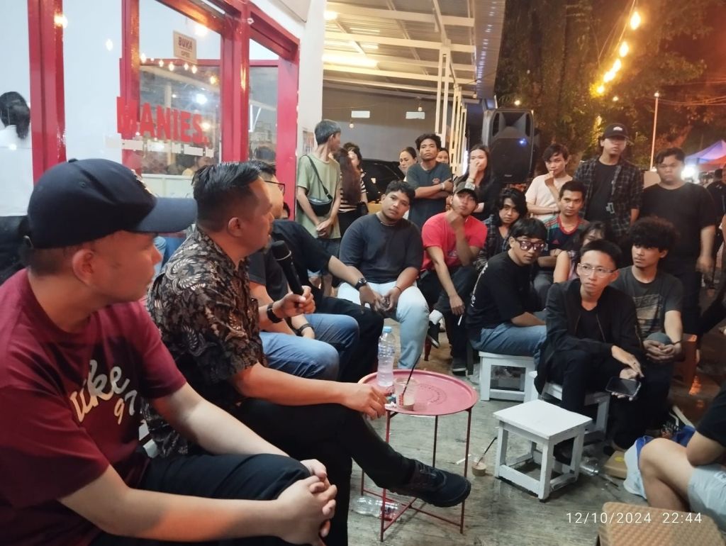 Richard Sualang yang terkenal humble ini duduk membaur bersama para anak muda Manado di Kedai Kopi Kisah Manis. Tak tunggu lama, suasana langsung mencair bersama para para milenial dan Gen Z ditemani dentuman musik rock yang dibawakan oleh para komunitas di tempat itu.