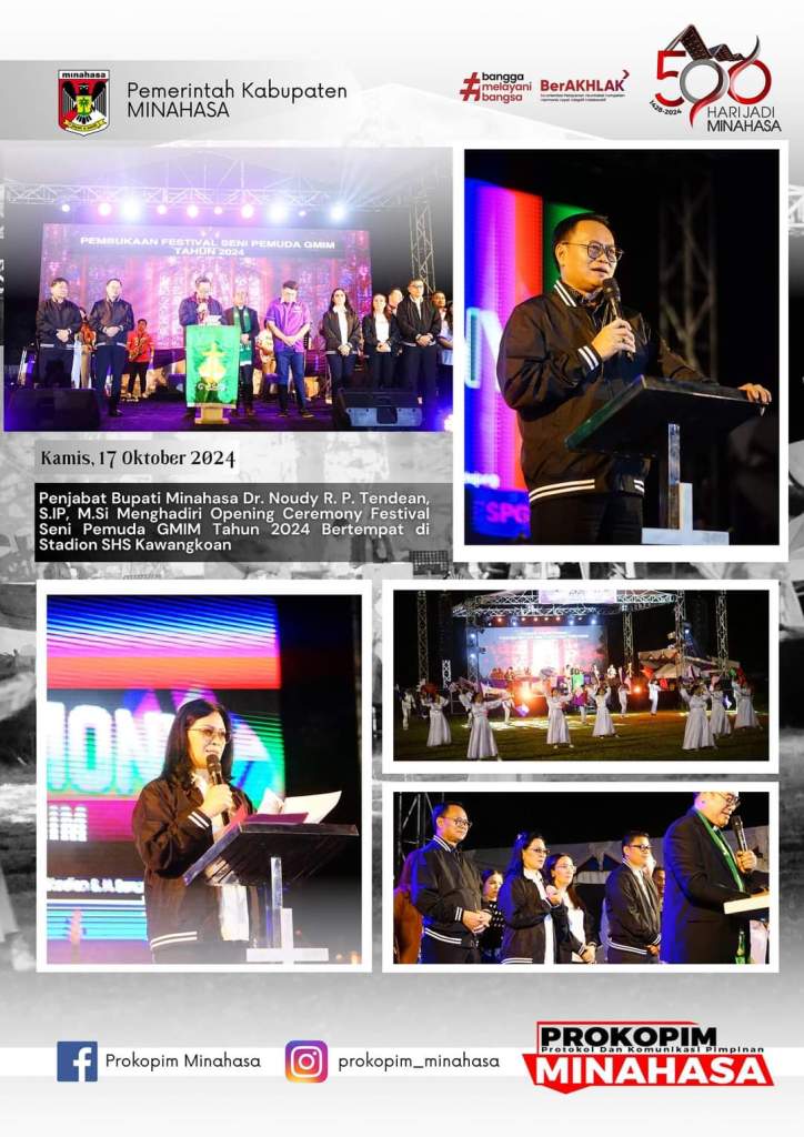 Minahasa – Wakil Ketua BPMS GMIM Pnt Drs Steven Kandouw, membuka Festival Seni Pemuda Gereja (FSPG) GMIM Tahun 2024 di Wilayah Kawangkoan Kabupaten Minahasa. Pembukaan kegiatan tahunan pesta iman pemuda GMIM ditandai dengan ibadah pembukaan yang di pimpin Pdt Jefry Saisab M.Th Wakil Sekretaris BPMS GMIM, yang bertempat di Lapangan Dr S H Sarundajang, Kamis (17/10/2024).