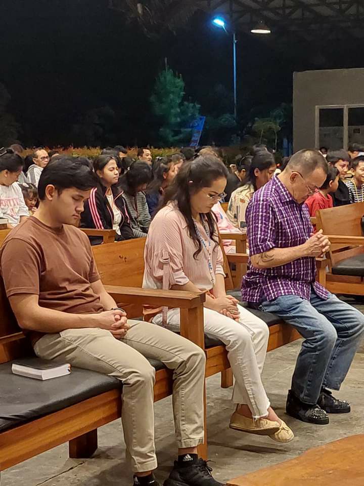Dalam ibadah ini seluruh umat yang hadir termasuk Wenny Lumentut dan keluarga mengucapkan doa Salam Maria sebanyak 50X yang di bagi dalam 5 mistery.