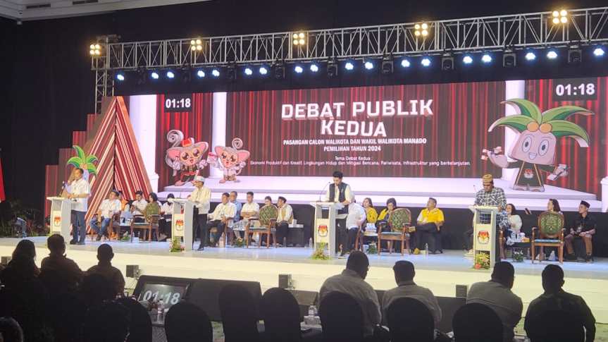 Manado – Komisi Pemilihan Umum (KPU) Manado gelar debat ke-2 Pemilihan Walikota dan Wakil Walikota yang berlangsung di Hotel Sintesa Peninsula Kota Manado, Minggu (03/11/2024).