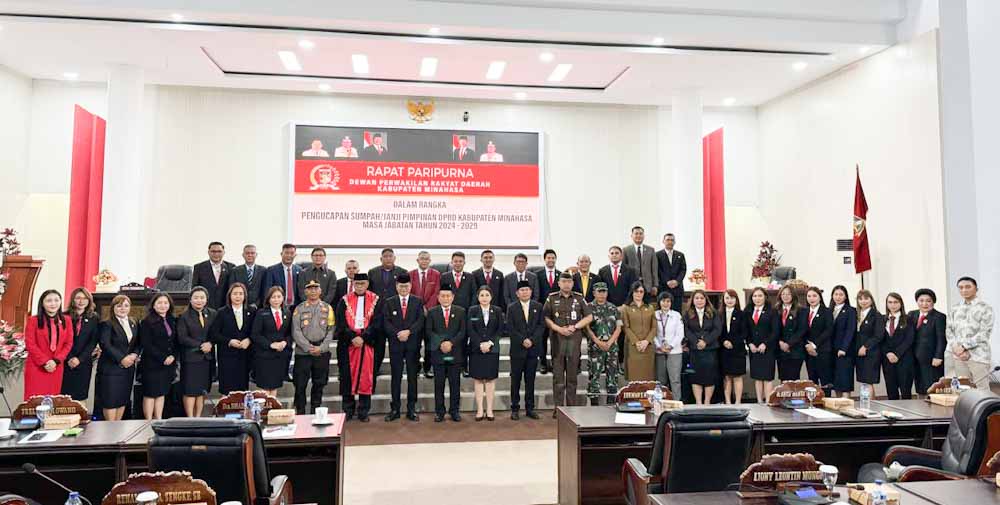 Tondano – DPRD Kabupaten Minahasa menggelar Rapat Paripurna dalam rangka pelantikan Pimpinan DPRD Minahasa periode 2024-2029, Senin (4/11/2024).
