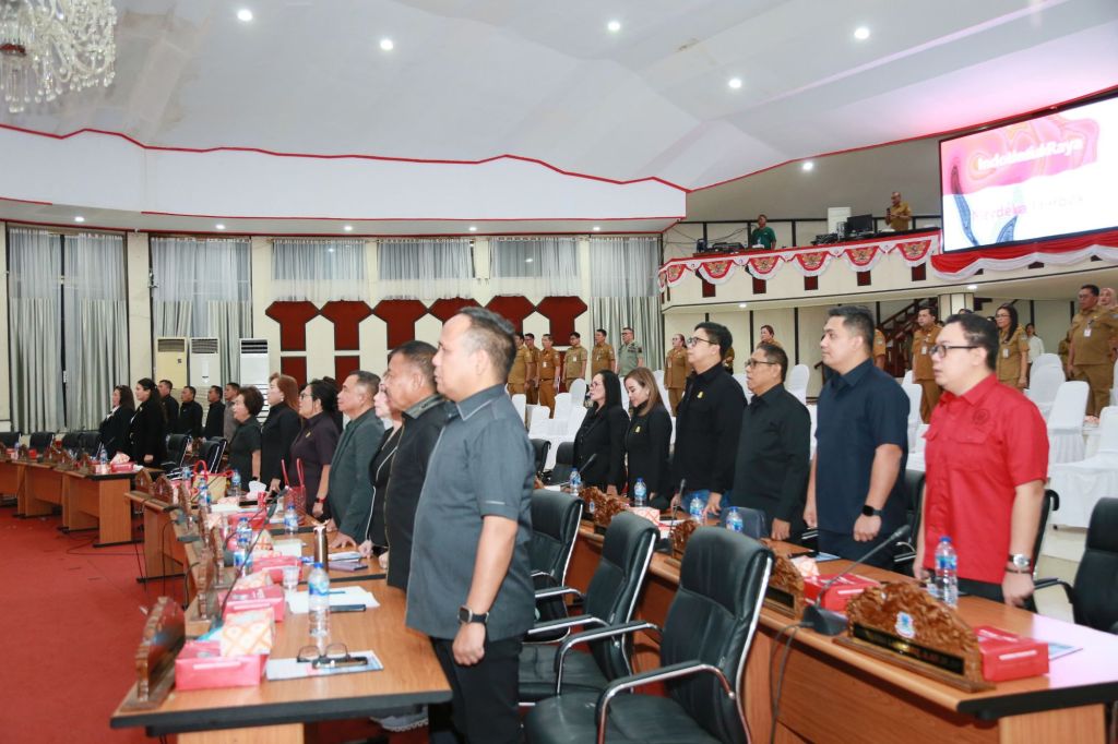 Rapat paripurna di pimpin oleh Ketua DPRD Kota Manado Dra Aaltje Dondokambey dan Wakil Ketua Mona Kloer serta seluruh anggota dewan dari setiap fraksi beserta forkopimda.