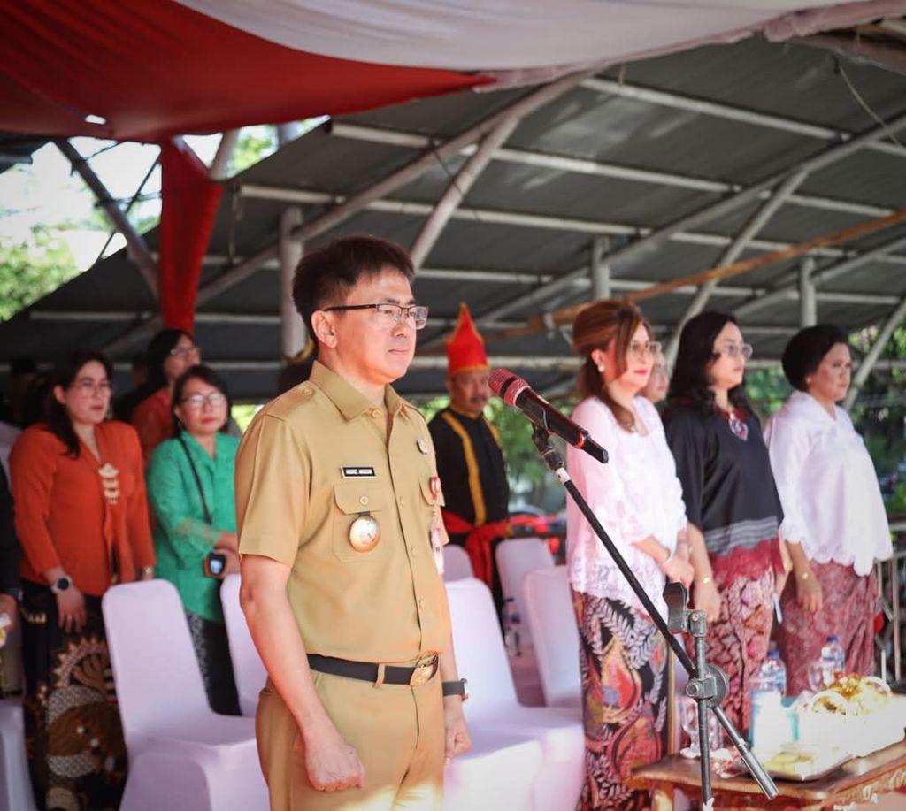 Turut Hadir oleh Forkopimda Manado, Ketua Tim Penggerak PKK Kota Manado Irene Golda Angouw Pinontoan, Kepala SKPD, Staf Ahli dan Staf Khusus Walikota, Tokoh Pendidikan dan Tokoh Masyarakat, para camat, pejabat eselon serta ribuan Guru SD SMP se Kota Manado dan undangan lainnya.(*/gabby)