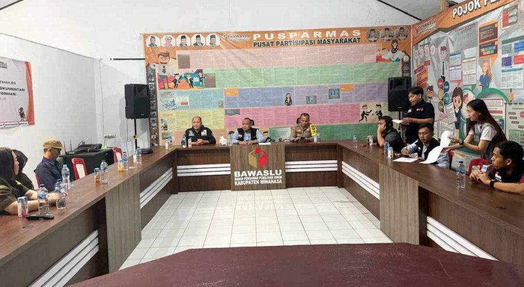 MINAHASA – Badan Pengawas Pemilihan Umum (Bawaslu) Kabupaten Minahasa bersama Sentra Penegakan Hukum Terpadu (Gakkumdu) meninjau kesiapan Tempat Pemungutan Suara (TPS) di beberapa tempat, Selasa (26/11/24).