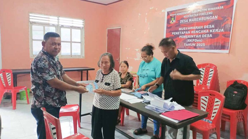 Minahasa – Sebanyak 64 Keluarga Penerima Manfaat (KPM) dengan kemiskinan ekstrim di Desa Warembungan Kecamatan Pineleng Minahasa, terima Bantuan Langsung Tunai (BLT) dari Pemerintah Desa (Pemdes) tahap 4 untuk bulan Oktober sampai Desember 2024.