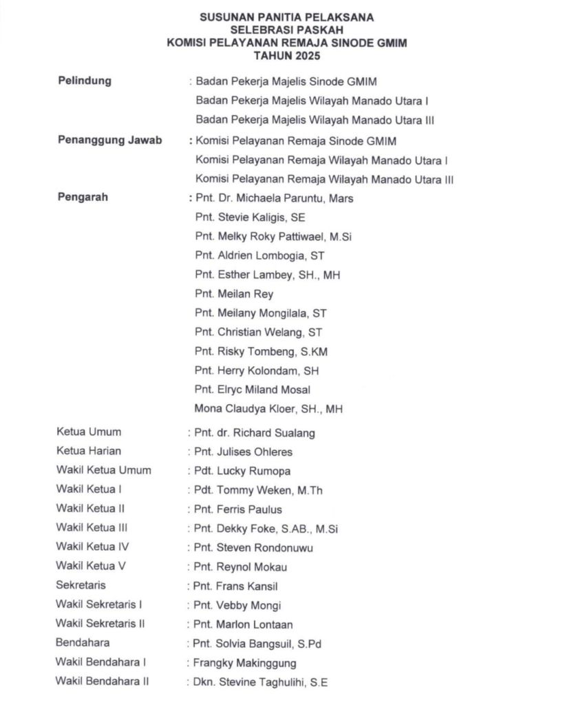 Berikut nama-nama panitia Selebrasi Paskah Remaja Sinode GMIM yang dilantik