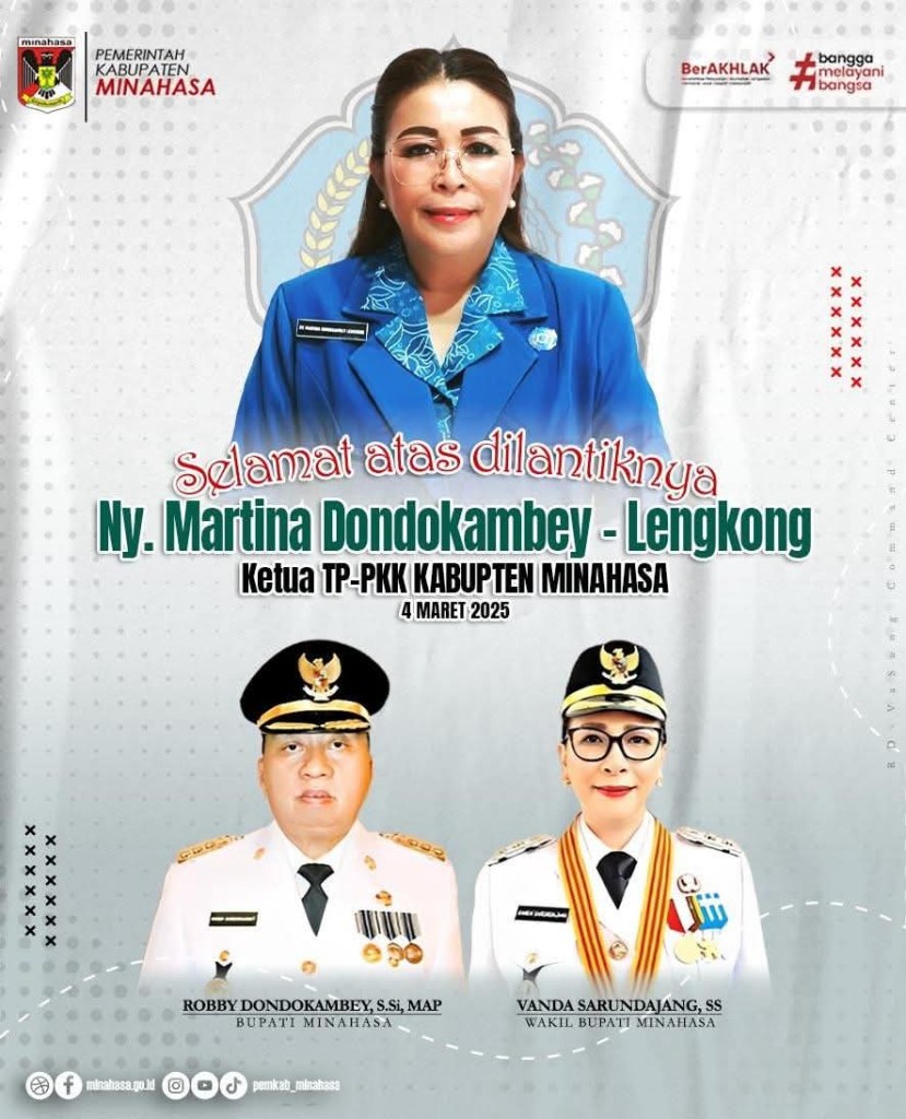 MANADO – Istri Bupati Minahasa Martina Dondokambey Lengkong SE akhirnya secara resmi dilantik sebagai Ketua TP-PKK Minahasa, Ketua Dekranasda, Tim Pembina Posyandu serta Ketua Bunda Paud di Kantor DPRD Provinsi Sulawesi Utara, Selasa (4/3/2025).