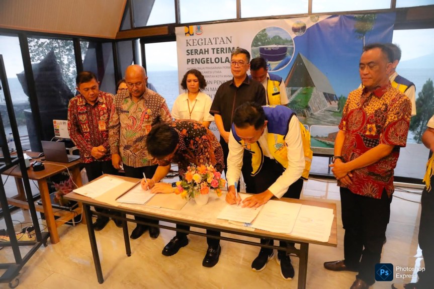 Wali Kota Andrei pada kesempatan ini menerima penyerahan proyek ini dengan ditandai penandatanganan administrasi pengelolaan yang nantinya akan dikelolah oleh pemerintah Kota Manado.