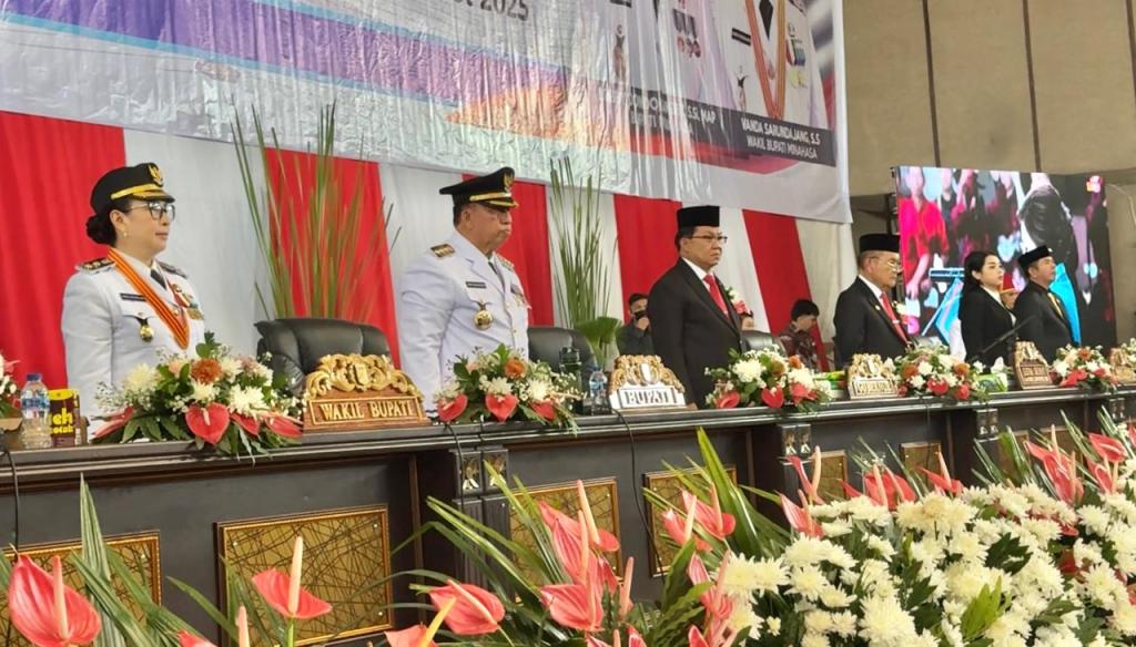 Rapat Paripurna ini sendiri dipimpin Ketua DPRD Minahasa, Drs Robby Longkutoy MM, didampingi Wakil Ketua I Putri Pontororing dan Wakil Ketua II Adri Kamasi SH MH, turut dihadiri Gubernur Sulut yang diwakili Asisten I Setdaprov, Denny Mangala, Forkopimda Minahasa, Sekda Lynda Watania bersama Jajaran serta tamu dan undangan.