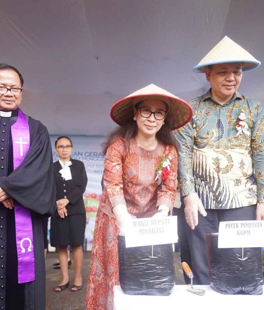 Minahasa- Wakil Bupati Minahasa, Pnt. Vanda Sarundajang, S.S., menghadiri Ibadah Minggu yang dirangkaikan dengan Pengurapan Gembala dan Peneguhan Diaken di KGPM Sidang Sola Gratia Kiawa. Dalam kesempatan ini, juga dilakukan pencanangan Gerakan Menanam kepada jemaat sebagai bentuk kepedulian terhadap lingkungan dan ketahanan pangan.