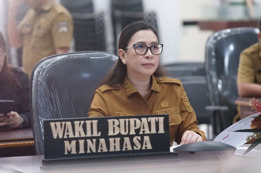 Minahasa- Wakil Bupati Minahasa, Vanda Sarundajang, SS, didampingi Sekretaris Daerah Dr. Lynda Watania MM,M,Si, mengikuti Rapat Koordinasi Pengendalian Inflasi yang dirangkaikan dengan Pembahasan Antisipasi Cuaca Ekstrem pada Periode Idul Fitri 1446 H. Kegiatan ini berlangsung di Ruang Sidang Kantor Bupati Minahasa pada Senin (10/3/25).