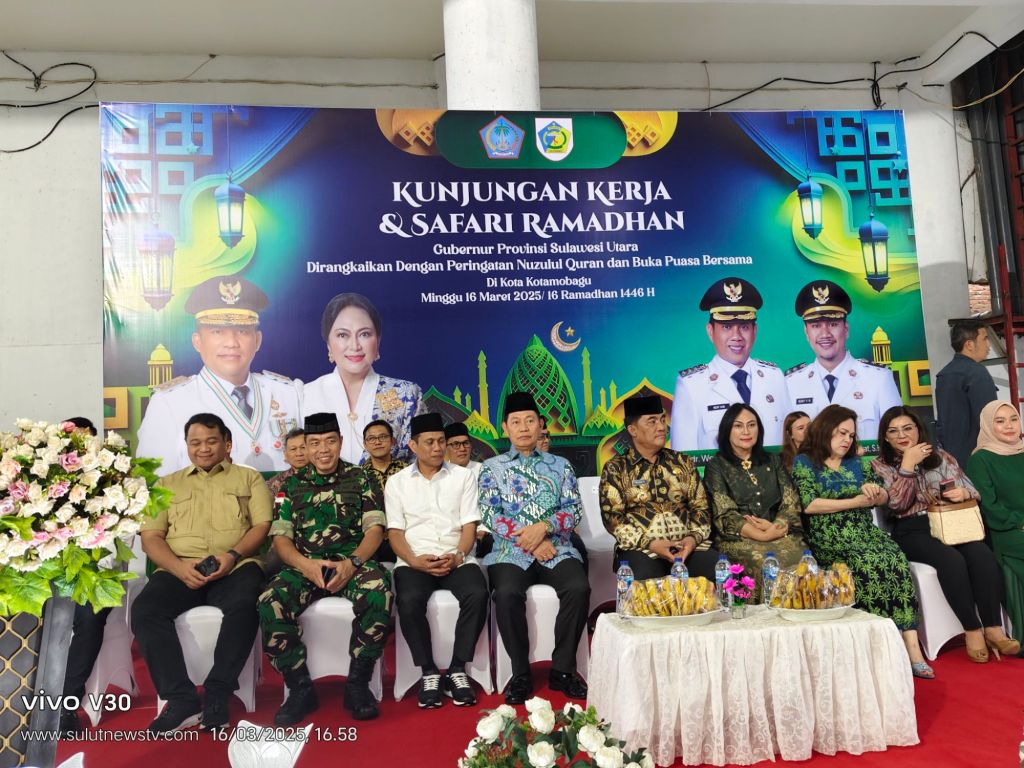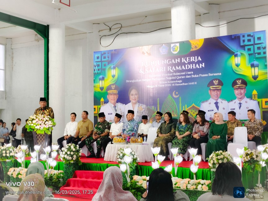 SULUTNEWSTV. com, KOTAMOBAGU – Kepala Kantor Perwakilan Bank Indonesia Sulawesi Utara Andry Prasmuko mendampingi Gubernur Sulawesi Utara Majyen TNI (Purn) Yulius Selvanus, SE disela safari ramadhan Pemerintah Provinsi Sulawesi Utara dalam rangka bulan suci ramadhan dan menyambut Hari Besar Keagamaan Nasional Idul Fitri 1446 Hijriah, Ramadan ke 16, di Masjid Agung Baitul Makmur, Kotamobagu, Minggu(16/3/2025).