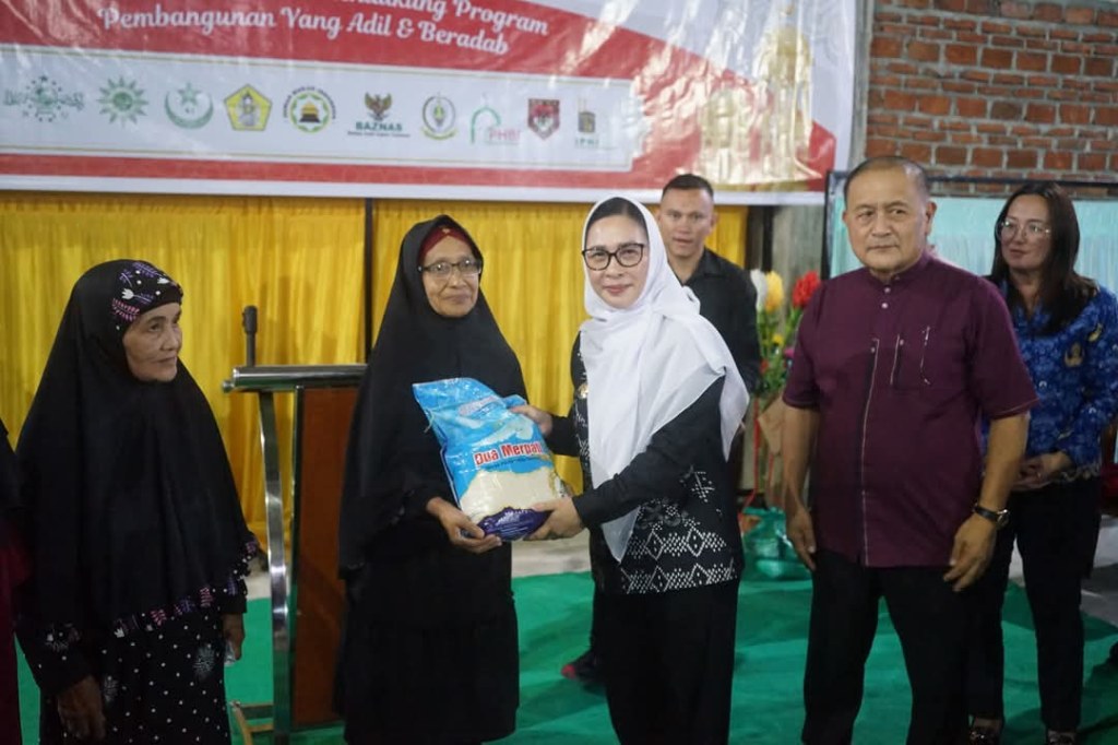 Momen Safari Ramadhan ini, Pemkab Minahasa menyerahkan bantuan Sembako secara simbolis kepada kaum duafa, dan serahkan Wabup Vanda Sarundajang SS bersama Ketua DPRD Minahasa, Drs Robby Longkutoy MM. (*Advetorial)