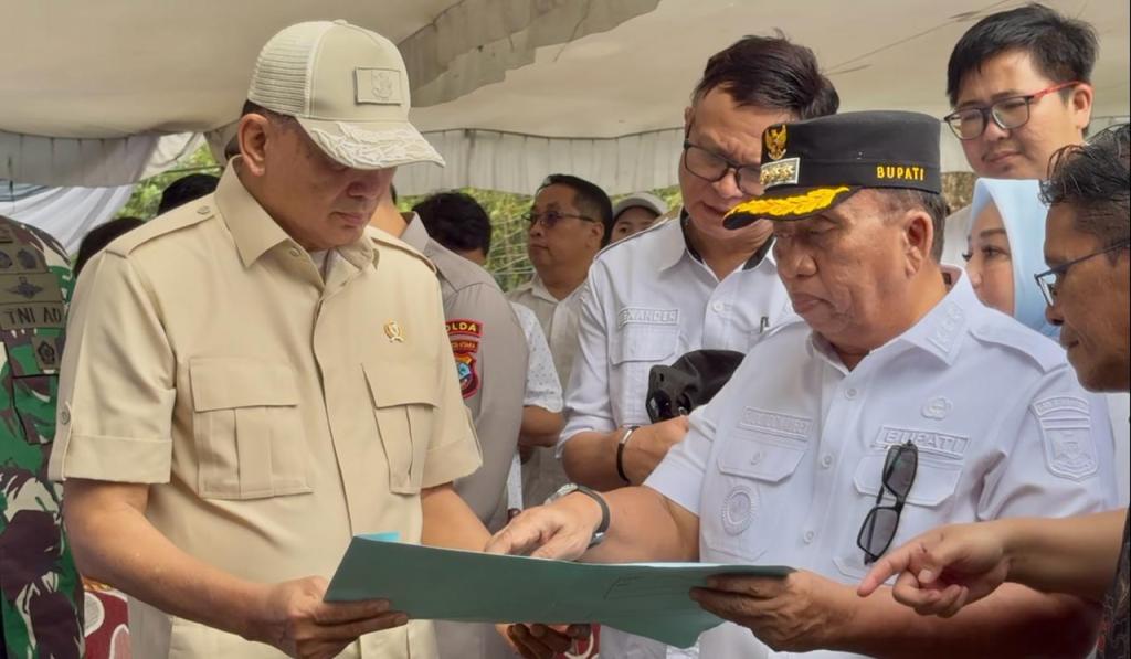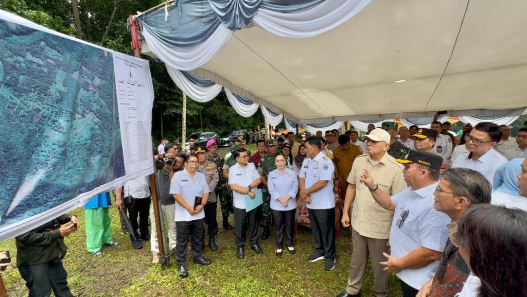 MINAHASA – Bupati Minahasa, Robby Dondokambey SSi MAP dan Wakil Bupati Vanda Sarundajang SS, mendampingi Menteri Pertahanan Republik Indonesia (Menhan-RI), Letjen TNI (Purn) Sjafrie Sjamsoeddin, meninjau pembangunan SMA Unggulan Garuda Nusantara, di Desa Koyawas, Kecamatan Langowan Barat, Rabu (19/3/25).
