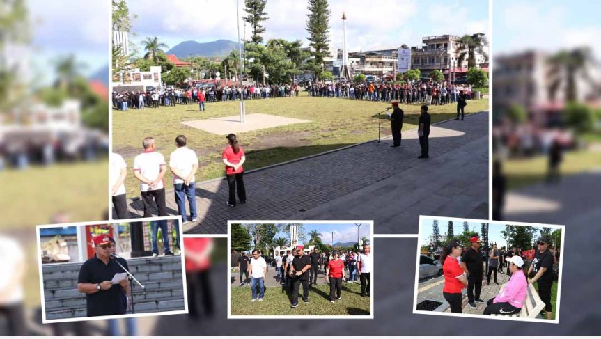 Minahasa, Bupati Minahasa, Robby Dondokambey SSi, MAP, memimpin langsung Apel Kerja Bakti yang dilaksanakan di Lapangan Dr. Sam Ratulangi, Tondano, Jumat (11/4). Kegiatan ini menjadi bagian dari komitmen Pemerintah Kabupaten Minahasa dalam menjaga kebersihan dan kelestarian lingkungan.